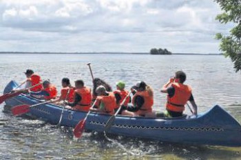 Einer der Höhepunkte: Die Kinder und Jugendlichen während einer Kanutour auf dem Schweriner See. Foto: privat