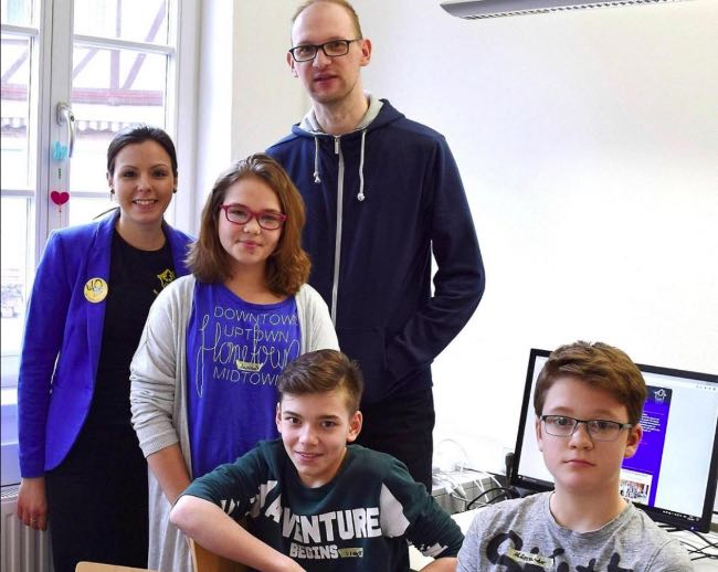 Sicherer surfen: Im Jugendtreff Haspel lernten Alessandro Zimmer, Siemon Hofman und Hannah Schneider den verantwortungsbewussten Umgang mit persönlichen Informationen. Referent war Sebastian Maier, im Bild mit Haspel-Leiterin Julia Nennstiel. Foto: privat