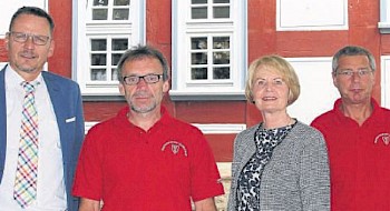Der Förderverein für ein zukunftsfähiges Melsungen freut sich über eine Spende in Höhe von 760 Euro. Abteilungsleiter für Jedermannsport bei der MT-Melsungen, Joachim Ossig (mitte links), übergab die Spende zusammen mit Walter Thein an Bürgermeister Markus Boucsein (links) und Ilona Braun vom Förderverein. Möglich wurde die Spende durch den MT-Benefizlauf, der beim 40. Melsunger Heimatfest stattfand. „Insgesamt 32 Mannschaften mit 150 Teilnehmern waren beim Spendenlauf dabei. Es war ein voller Erfolg“, sagte Joachim Ossig. „Es ist toll das die MT-Melsungen durch diesen Spendenlauf so viele Menschen angesprochen hat“, sagte Ilona Braun. (hvx) Foto: Valentin