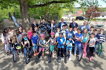 Hierzu wurden zwölf Roller für die Kinder der Klassen 1 und 2 sowie zwölf Fahrräder für die Kinder der Klassen 3 und 4 angeschafft.