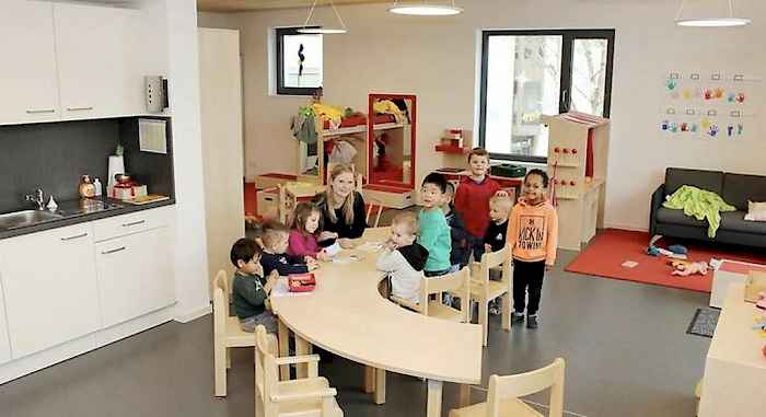 Erwachsene und Kinder haben sich gut eingelebt. Pandemiebedingt können die Kinder zwar das offene Konzept nicht nutzen, das im Kindergarten gilt. Aber sie haben in den großzügigen Gruppenräumen viel Platz zum Malen, Basteln, Spielen und Bücher ansehen.