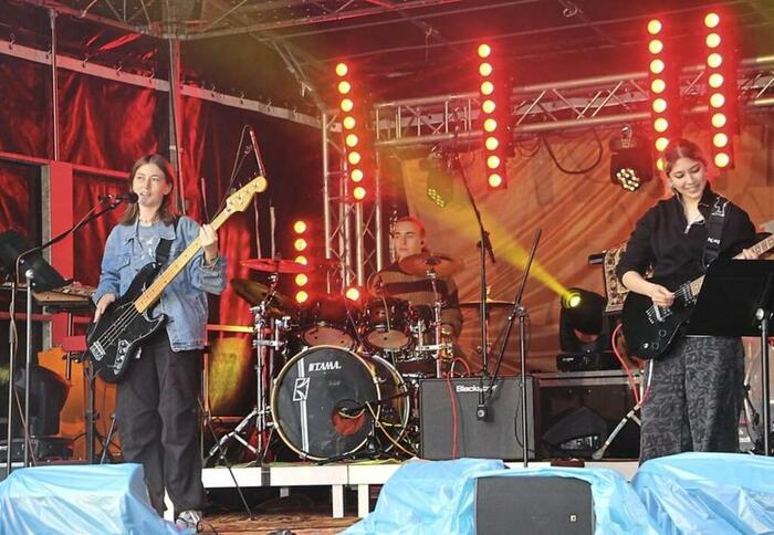 TAKD, so der Veranstaltungsname, steht für „Toleranz, Akustik, Konzert, Draußen“. Auf zwei Bühnen präsentierte sich zunächst die „Bunkband“ der Musikschule, die für ihren überhaupt erst zweiten Auftritt mit Punk – und Rocktiteln und Covers von den Ärzten beklatscht wurde. Annika Niemand: „Ich bin sehr nervös vor so vielen Leuten zu spielen.“